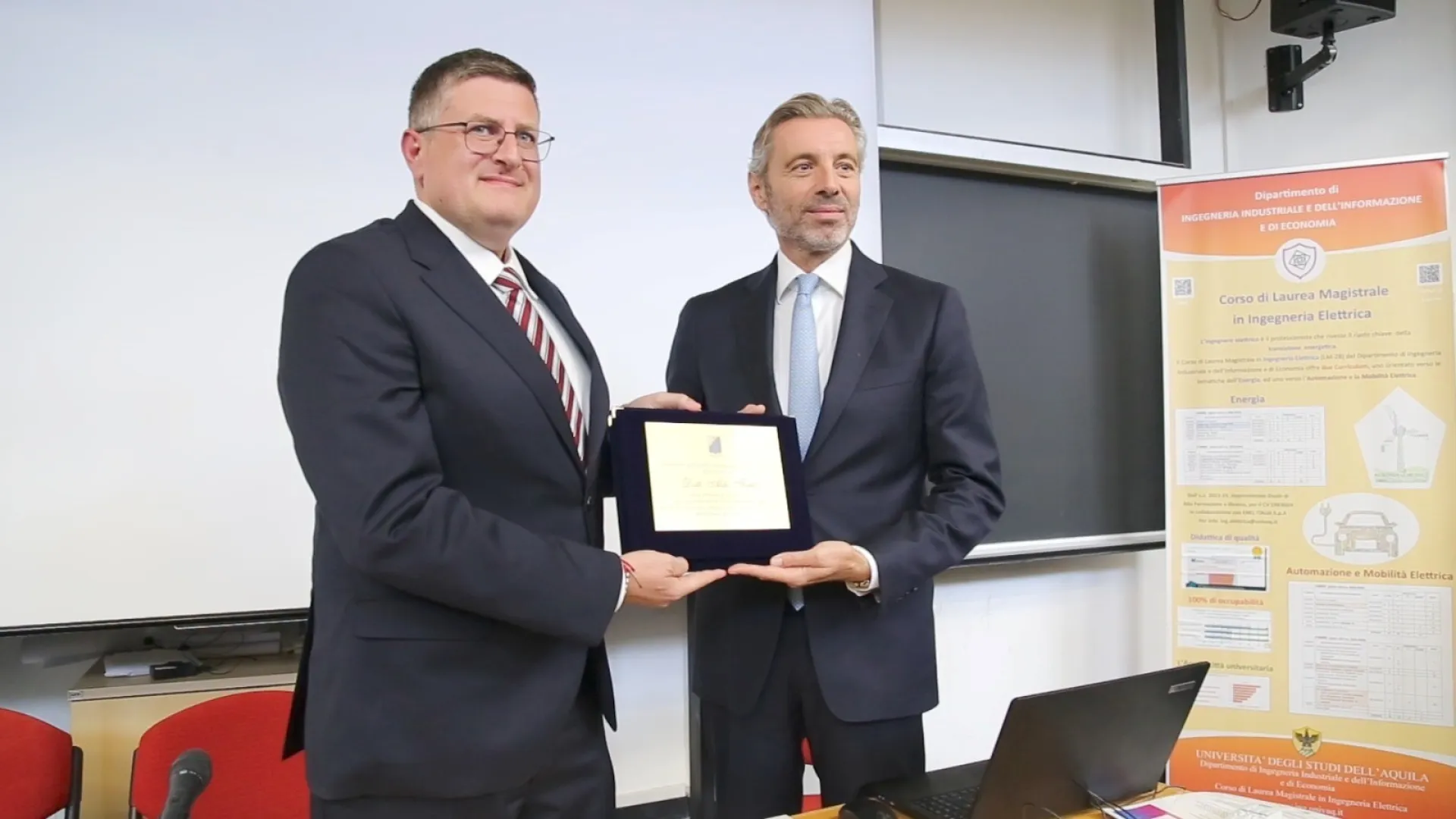 All’evento hanno partecipato, tra gli altri, il Rettore Fabio Graziosi, il direttore del Dipartimento Vincenzo Stornelli, la consigliera comunale Laura Cococcetta, il capo di gabinetto della Presidenza della giunta regionale Stefano Cianciotta, l’Amministratore delegato di e-Distribuzione Vincenzo Ranieri e il presidente del corso di laurea Edoardo Fiorucci.